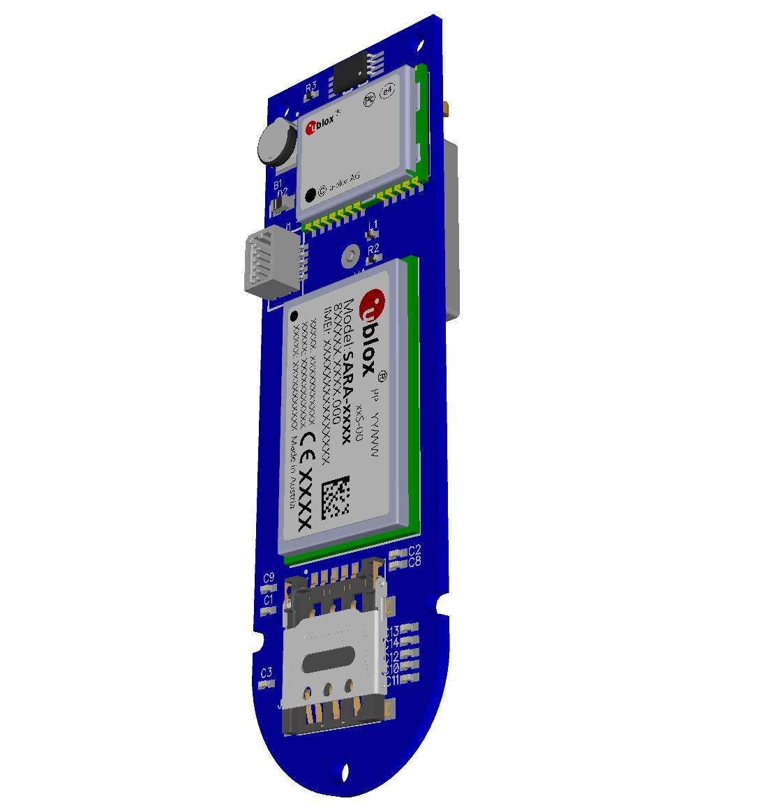 Прототип IoT модуля для установки в электросамокат Xiaomi M365. Данный модуль предназначен для обмена данными с сервером сервиса по аренде электросамокатов (шеринг). Осуществлял удаленный мониторинг состояния самоката, включал или отключал, следил за уровнем заряда, считывал ошибки, включал и отключал фонарики, сообщал об уровне наклона (самокат стоял или лежал), передавал данные о местоположении на основе данных со спутников GPS через сеть GPRS-2G. Высокую точность позиционирования по спутникам GPS и передачу данных обеспечивали чип-антенны Taoglas. Так же данный модуль был оснащен системой защиты от вскрытия и звуковой сигнализации. Компактные размеры модуля позволяли встроить его в корпус руля самоката без дополнительных доработок. Данный проект являлся прототипом и в серию не пошел.