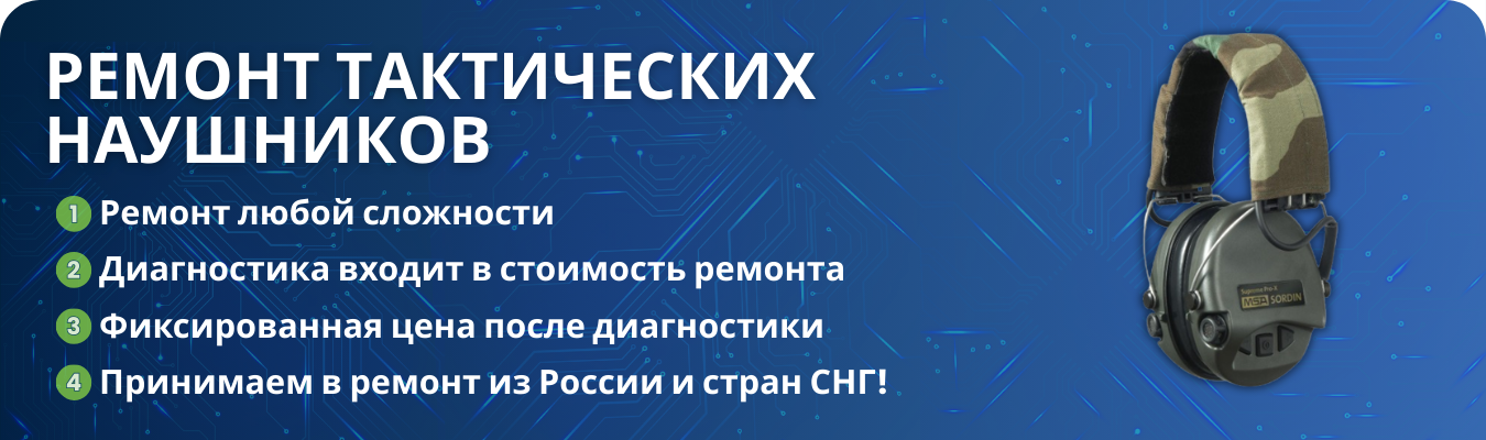 Сервисный центр Элепарт выполняет ремонт тактических и специальных наушников с активным шумоподавлением.